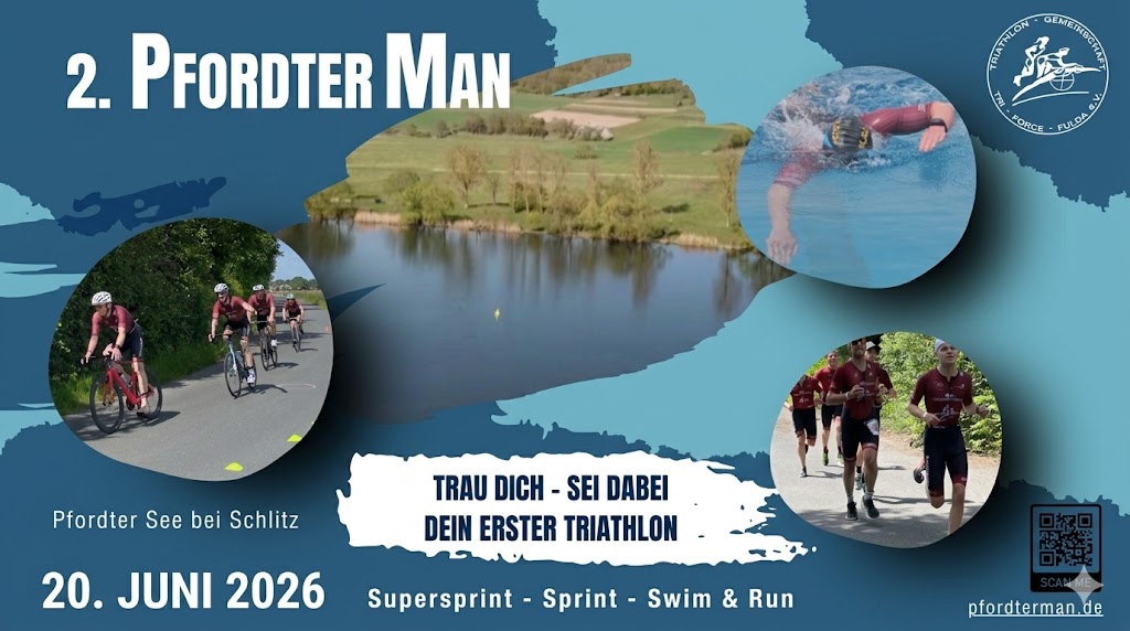 Am 20. Juni 2026 verwandelt sich der Pfordtersee bei Schlitz wieder in eine sportliche Bühne für Ausdauer, Ehrgeiz und jede Menge Motivation. Beim 2. PfordterMan, organisiert von Tri-Force Fulda, können Einsteiger und ambitionierte Athleten gleichermaßen Triathlon-Luft schnuppern.