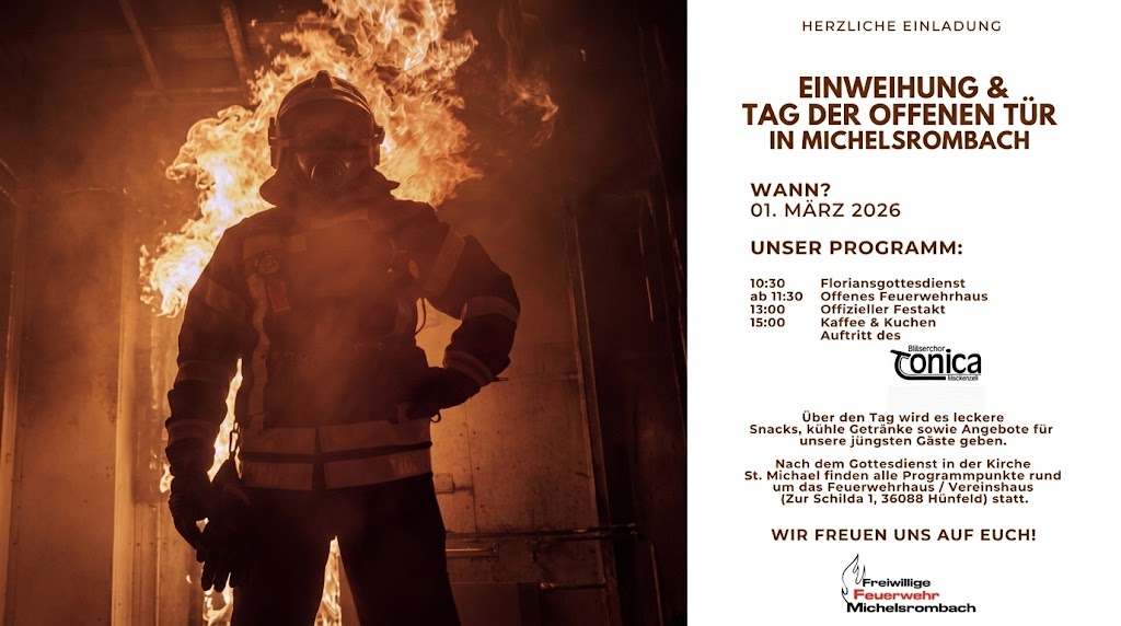 Nach einer langen Bauphase ist es endlich soweit: Am Sonntag, 01.03.2026, feiert die Freiwillige Feuerwehr Michelsrombach die offizielle Einweihung und Schlüsselübergabe des neu entstandenen Anbaus. Ein besonderer Moment für die Wehr und für die gesamte Dorfgemeinschaft.