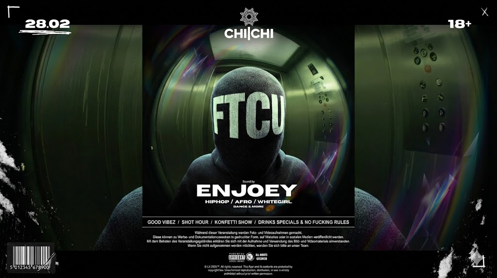 Ab 23:59 Uhr übernimmt DJ ENJOEY das Pult und liefert kompromisslosen Sound von der ersten Sekunde an. 🎧
