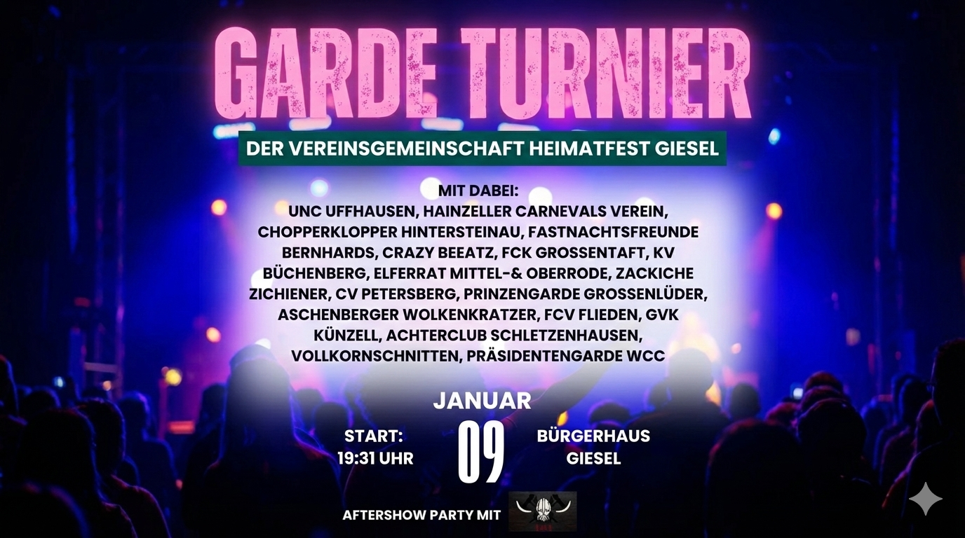 Die Vereinsgemeinschaft Heimatfest Giesel lädt ein zum großen Garde-Turnier!