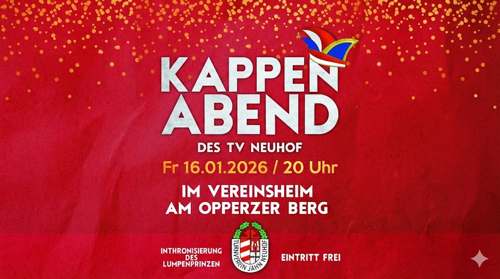 Der TV Neuhof lädt herzlich zum traditionellen Kappenabend ein und verspricht einen närrischen Abend voller Humor, Stimmung und guter Laune 🤡🥳