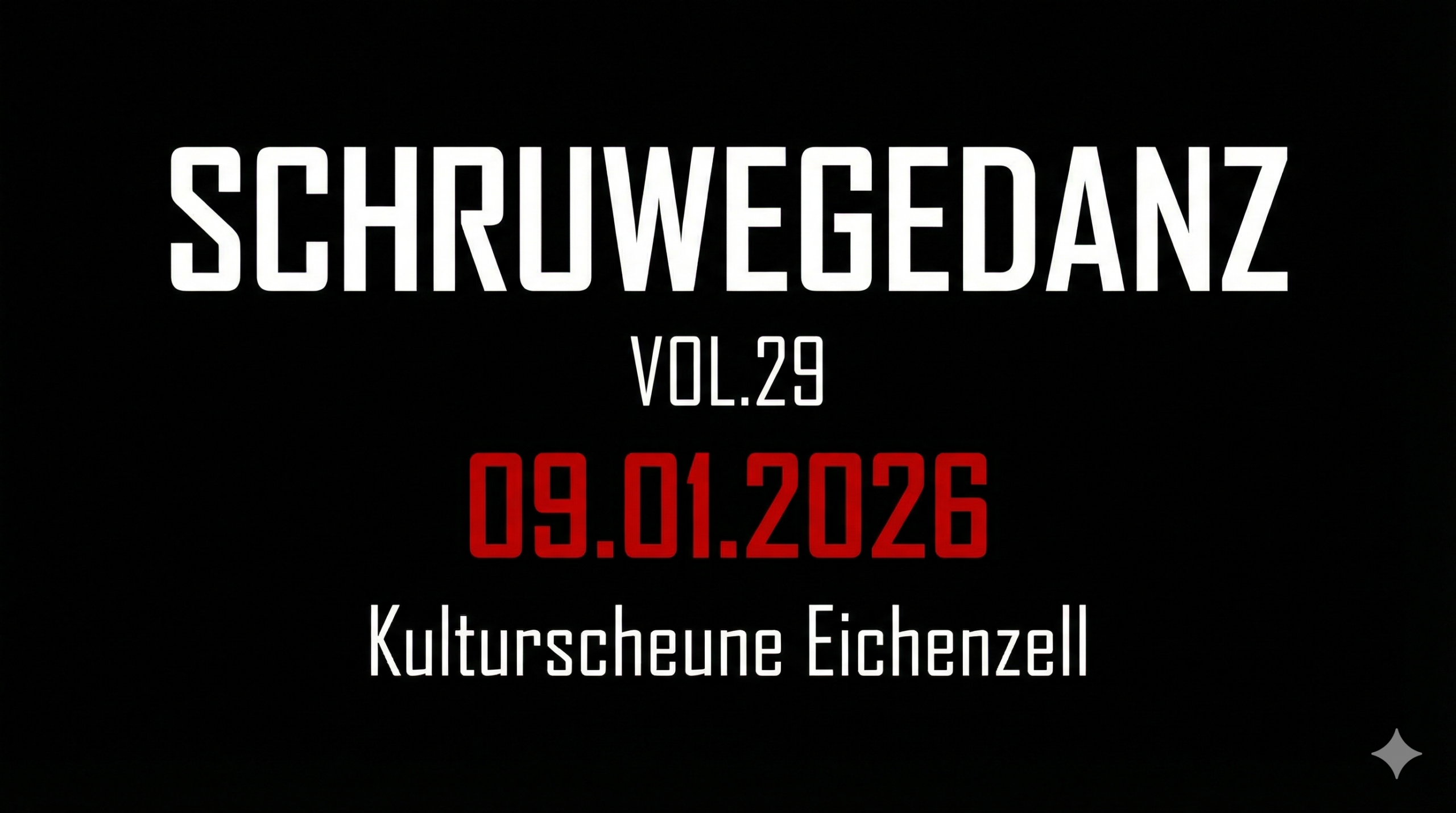 Schruwegedanz Vol.29 findet am Freitag 09.01.2026 in der Kulturscheune Eichenzell statt.Viele befreundete Gruppen sind mit dabei. Wir freuen uns auf einen schönen Abend in der Scheune mit euch…