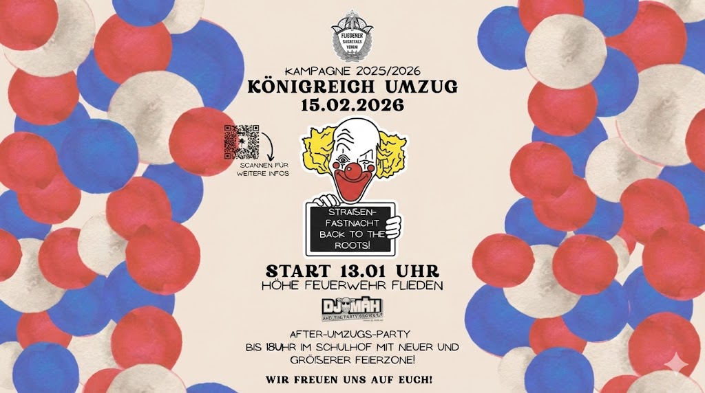 πŸ‘‘πŸŽ­ KΓ–NIGREICH-UMZUG 2026 IN FLIEDEN πŸŽ­πŸ‘‘ Straßenfastnacht – Back to the Roots Helau aus dem KΓΆnigreich! Der HΓΆhepunkt der Fliedener Fastnachtskampagne 2025/2026 steht bevor: Am Fastnachtssonntag, den 15.02.2026, zieht der KΓΆnigreich-Umzug wieder durch die Straßen von Flieden und verwandelt den Ortskern in eine große nΓ€rrische Feiermeile πŸŽ‰πŸ€‘ Unter dem Motto β€žFastnacht back to the roots […]