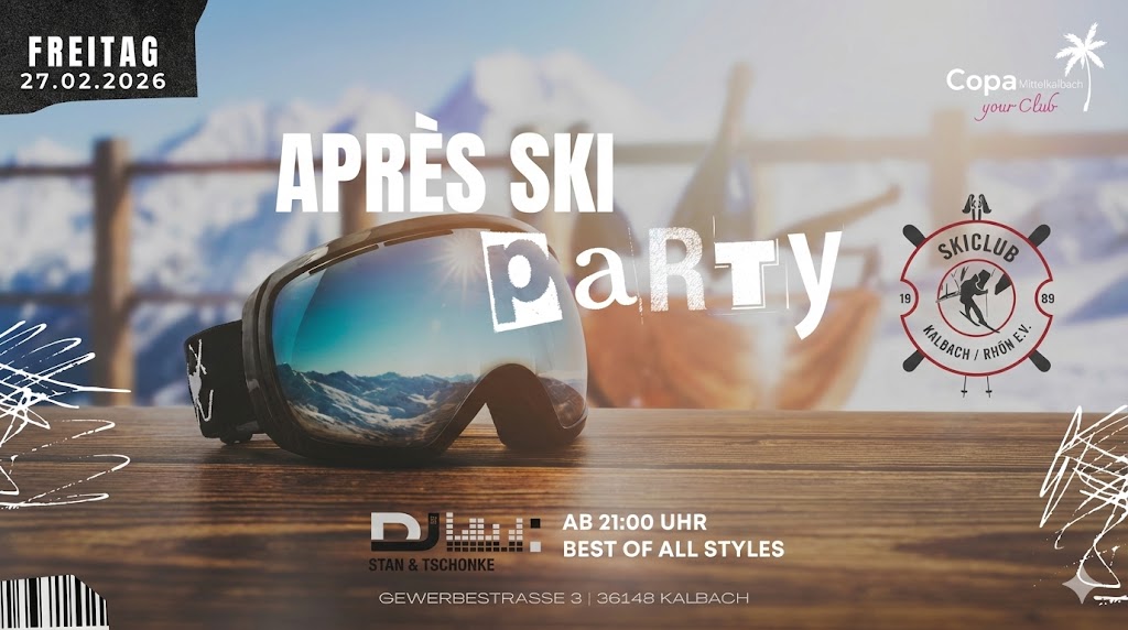 🎿🍻 AprΓ¨s Ski Party in der Copa – Kalbach 🍻🎿 Am Freitag, den 27.02.2026 holen wir das GefΓΌhl der SkihΓΌtte auf die TanzflΓ€che der Copa Mittelkalbach! Winterjacke aus. Partymodus an. πŸŽ‰ Ab 21:00 Uhr verwandelt sich die Copa in eine echte AprΓ¨s Ski Location mit guter Stimmung, kalten Drinks und Musik, die jeden von den […]