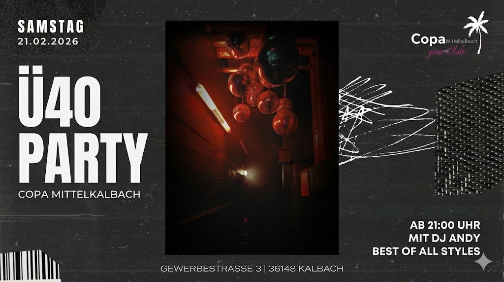 πŸŽ‰πŸ•Ί Ü40 Party in der Copa Mittelkalbach – Feiern kennt kein Alter! πŸ’ƒπŸŽΆ Am Samstag, den 21.02.2026, heißt es wieder: TanzflΓ€che frei fΓΌr die Ü40 Party in der Copa Mittelkalbach. Ein Abend fΓΌr alle, die Lust auf gute Musik, entspannte Stimmung und ausgelassenes Feiern haben – ganz ohne Altersstress. 🎧 DJ Andy sorgt ab 21:00 […]