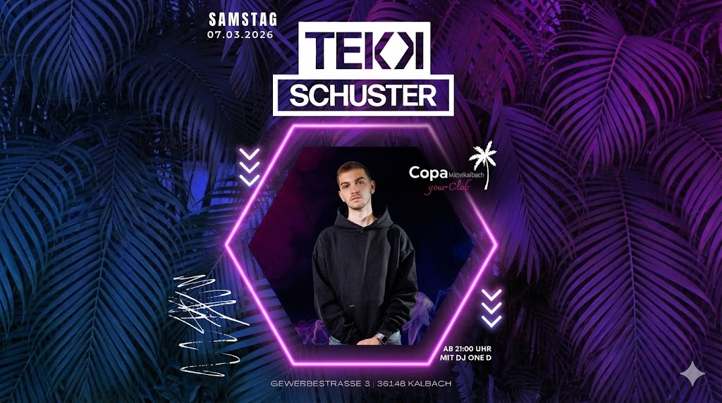 πŸ–€πŸ”Š TEKKSCHUSTER – Techno Night in der Copa Mittelkalbach πŸ”ŠπŸ–€ Am Samstag, 07.03.2026 wird es kompromisslos laut in der Copa Mittelkalbach. TEKKSCHUSTER ΓΌbernimmt die Kontrolle ΓΌber den Floor und bringt rohen, treibenden Techno direkt auf die TanzflΓ€che. Schwarz. Direkt. Ohne Umwege. Hier geht es nicht um Trends oder Show – sondern um Bass, Druck und […]
