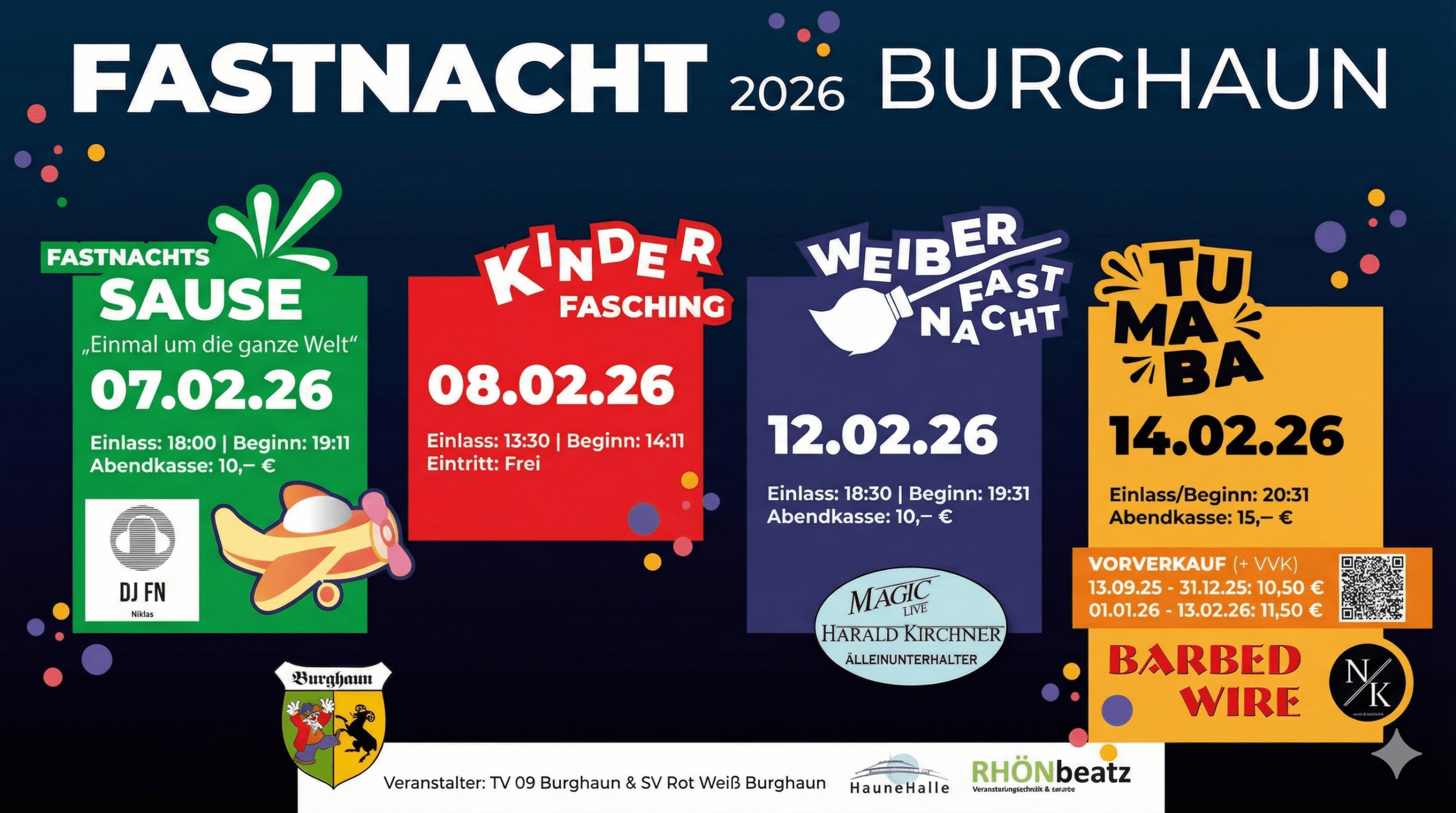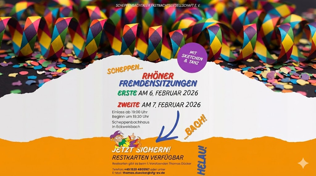π RhΓΆner Fremdensitzungen in Scheppenbach π Lachen, Staunen und echte Fastnachtsstimmung. Die RhΓΆner Fremdensitzungen der Scheppenbachtaler Fastnachtsgesellschaft bringen auch 2026 wieder beste Unterhaltung auf die BΓΌhne. Freut euch auf einen abwechslungsreichen Abend mit Sketchen, Tanz und nΓ€rrischem Humor, der garantiert kein Auge trocken lΓ€sst. π Termine Erste Fremdensitzung: Freitag, 06. Februar 2026 Zweite Fremdensitzung: Samstag, […]