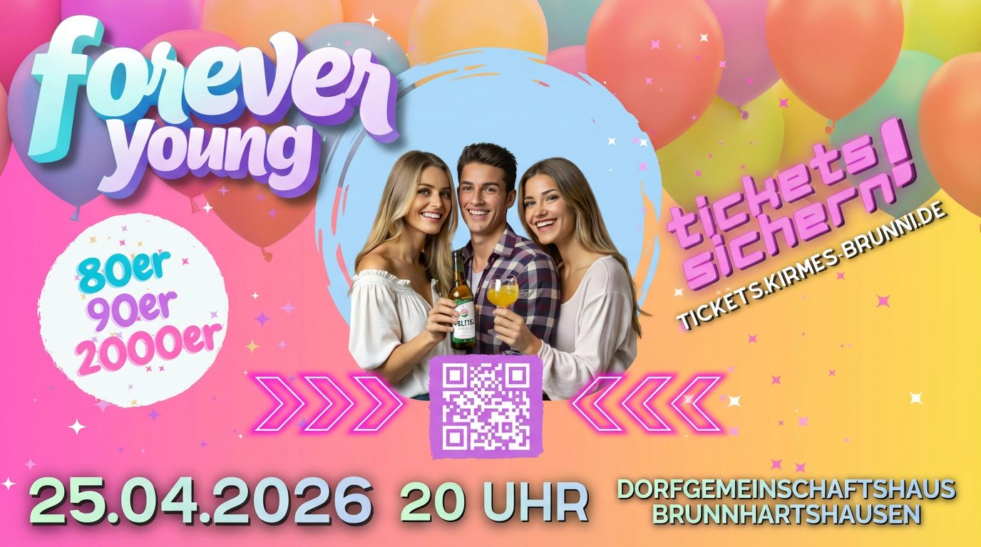 πΊπ« Forever Young Party β Die ultimative Zeitreise durch die besten Jahrzehnte! πΆβ¨ Die Kirmesgesellschaft Brunnhartshausen lΓ€dt euch herzlich zur legendΓ€ren βForever Young"-Party am Samstag, den 25. April 2026 ein! […]
