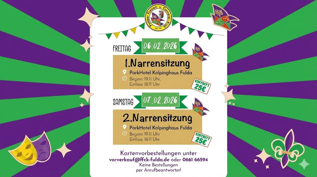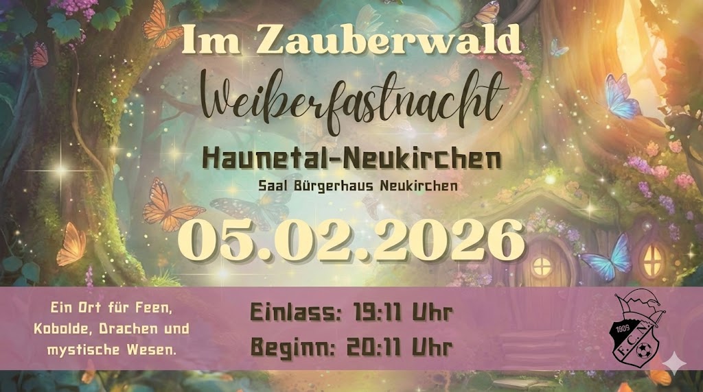 π§ββοΈβ¨ Weiberfastnacht βIm Zauberwaldβ β¨π Am Donnerstag, 05.02.2026 ΓΆffnet sich der Saal im BΓΌrgerhaus Neukirchen die Tore zu einer magischen Welt voller Fantasie, Glanz und nΓ€rrischer Stimmung ππ Unter dem Motto βIm Zauberwaldβ verwandelt sich der Abend in ein mystisches Erlebnis. Feen, Kobolde, Drachen und andere zauberhafte Wesen erobern die TanzflΓ€che und sorgen fΓΌr eine […]
