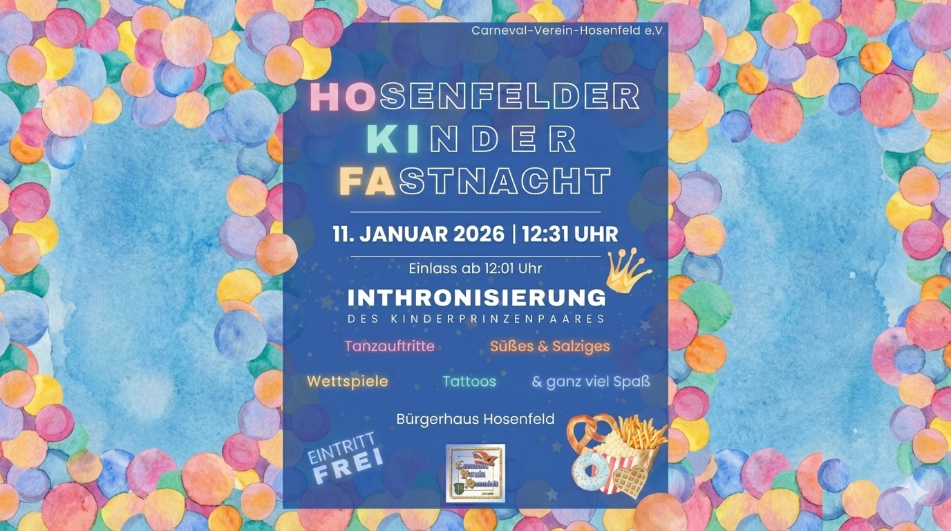 💃🎭 Garderabatz 2026 🎭💃 Neuer Name, gleiche Party. Der Carneval Verein Hosenfeld lädt zur großen Fastnachtsparty ins Bürgerhaus Hosenfeld ein. Mit dem Garderabatz startet ein neues Kapitel, aber eines bleibt garantiert gleich beste Stimmung, starke Auftritte und ein Abend voller Fastnachtsfreude. Freut euch auf tolle Gastvereine und Tanzgruppen aus der Region, die mit Gardetänzen, Showtänzen […]