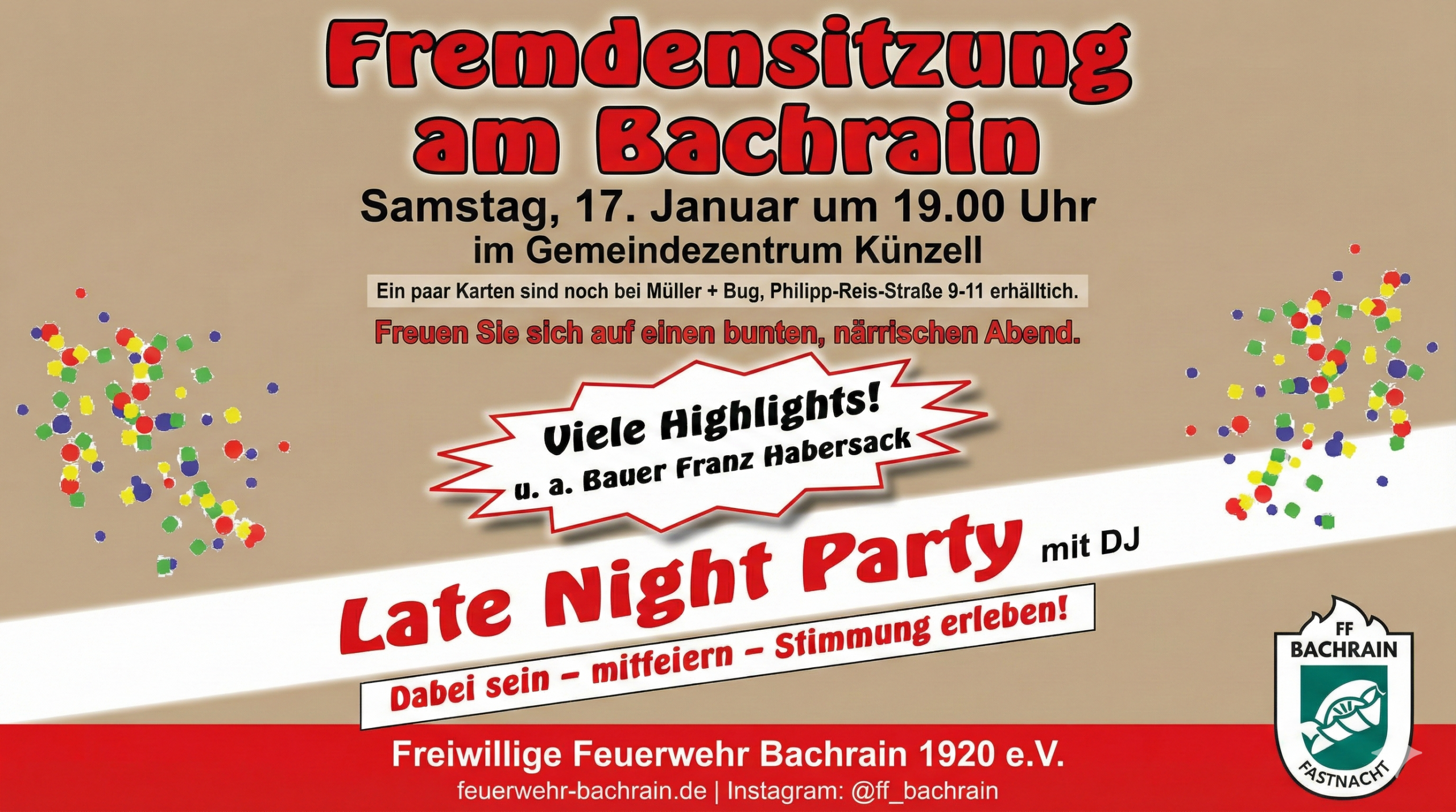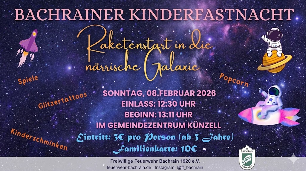 🎭🥳 Bachrainer Narrentreffen 2026 🥳🎭 Am Freitag, den 06. Februar 2026, heißt es wieder Bühne frei für das Bachrainer Narrentreffen. Ab 19:31 Uhr verwandelt sich das Gemeindezentrum Künzell in eine Hochburg der guten Laune, des Tanzes und der gelebten Fastnacht 🎉 Freut euch auf einen stimmungsvollen Abend mit 🎺 zahlreichen Einmärschen befreundeter Vereine 💃🕺 mitreißenden […]