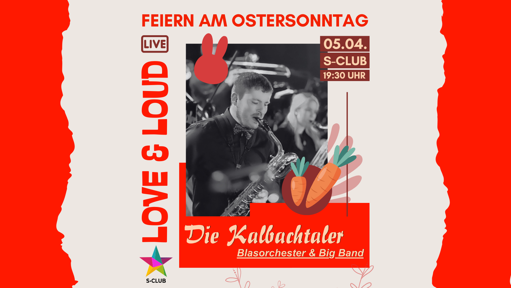 Feiern am Ostersonntag – LIVE mit Die Kalbachtaler 🎶🐰 Ostersonntag heißt: Bühne frei für geballte Big-Band-Power! Die Kalbachtaler – Blasorchester & Big Band bringen den S-Club zum Beben. Freut euch auf den satten Sound einer echten Big Band. Ein Abend für alle, die handgemachte Musik lieben und Ostern nicht auf dem Sofa verbringen wollen. Nach […]